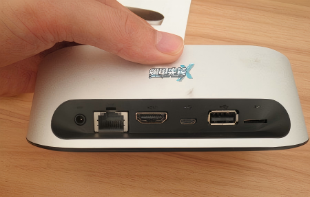 后面插槽,虽然大家都知道,但我还是再加深一下大家的记忆,从左到右分别是:电源插口、网线插口(没错,TB既支持无线,还丧心病狂的支持有线插入)、高清接口、micro-usb接口、usb接口和TF卡插槽(扩展内存什么的,最需要了。)介于插槽上面和本人玉手下面的,就是TB的logo了。logo标志很清晰,任凭快乐时光一波接一波,它都不会变色掉漆。